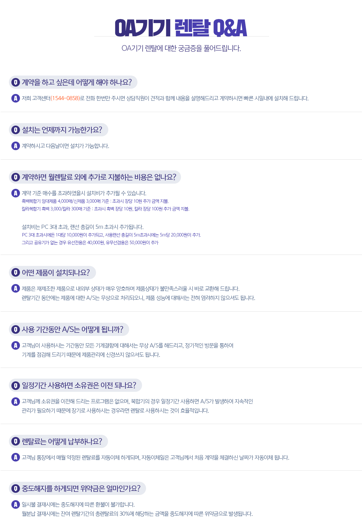 HOME > 판매·렌탈·매입안내 > OA기기 > Q&A